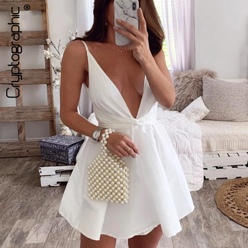 Криптографическое летнее платье 2020, элегантное платье без рукавов, сексуальные платья, вечерние мини-платья для ночного клуба, сарафан с v-образным вырезом