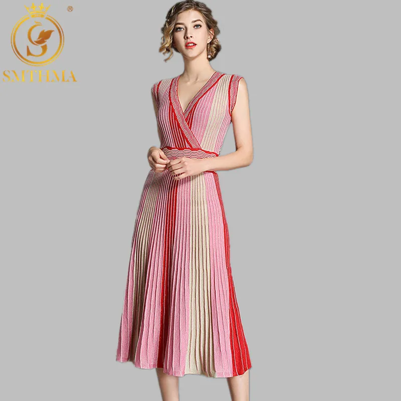 Женское трикотажное платье SMTHMA, розовое платье без рукавов с V-образным вырезом, лето-осень 2019