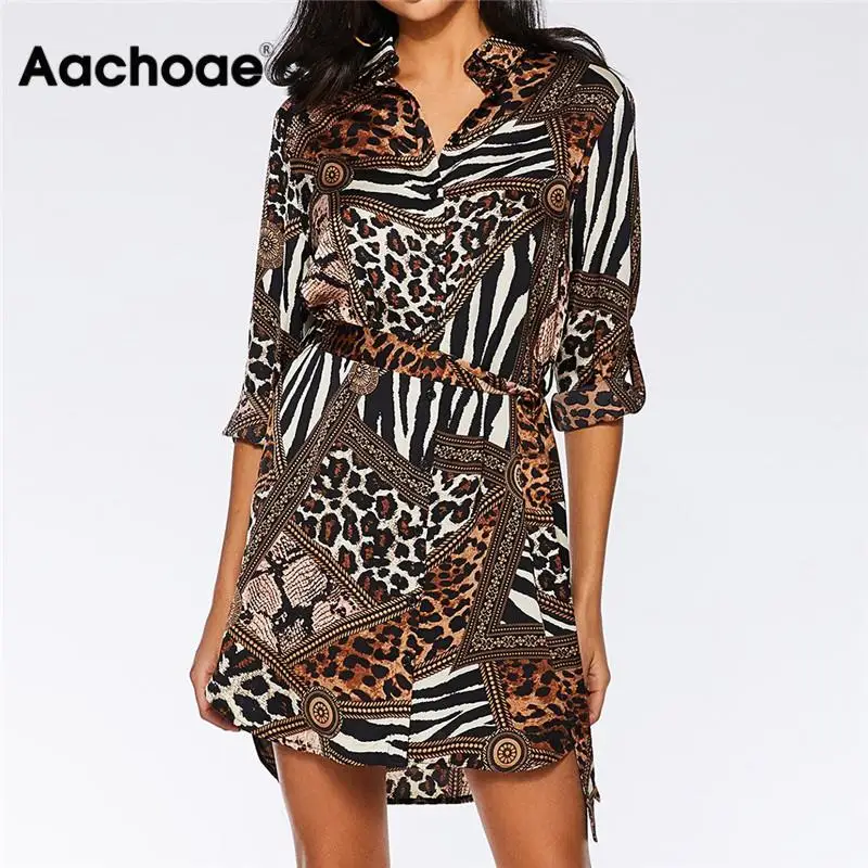 Леопардовое платье для женщин 2019 летние сексуальные мини Вечерние Платья повседневные с отложным воротником офисные рубашки платье женски...