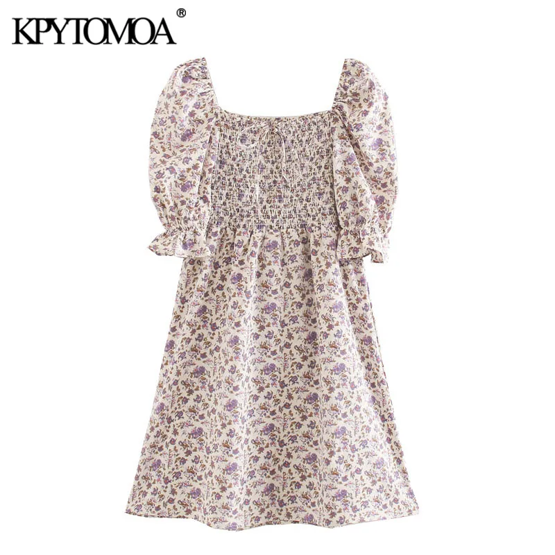KPYTOMOA женское модное эластичное мини-платье с цветочным принтом, винтажное платье с квадратным воротником и пышными рукавами, модель 2020