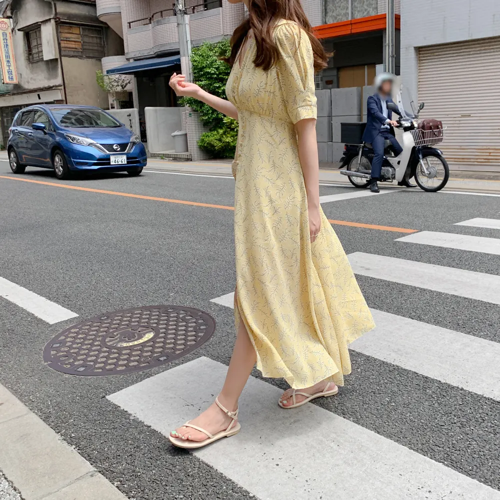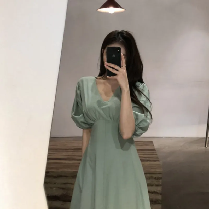 Корейское женское летнее хлопковое льняное сексуальное длинное платье трапециевидной формы с v-образным вырезом женское элегантное платье...