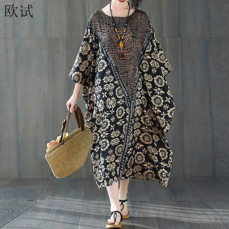 Летнее шелковое сатиновое платье размера плюс, 2020, высокое качество, винтажные платья с цветочным принтом, 4XL 5XL 6XL 7XL для женщин, длинное платье с рукавами летучая мышь