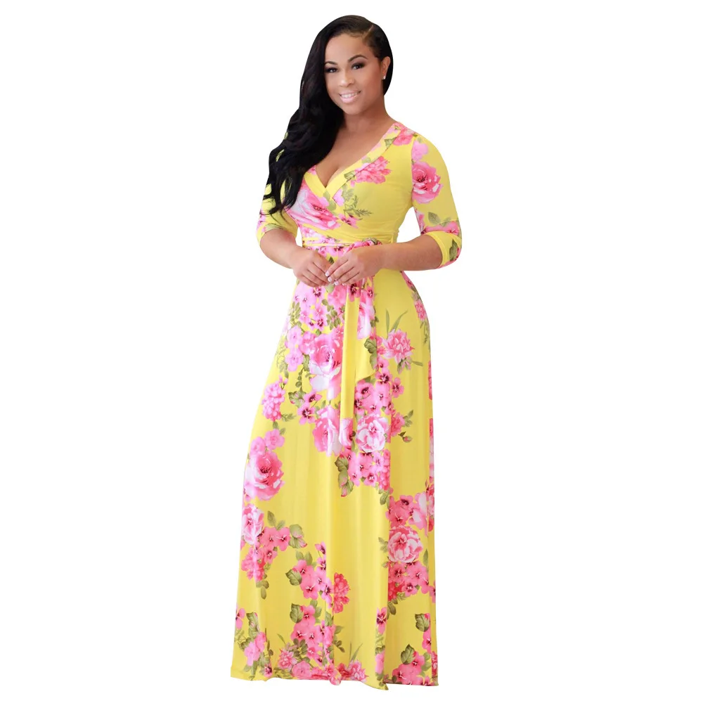 Расширение цифровая печать платье Повседневное Цветочный принт три четверти линия V шеи женское платье Вечерние Винтаж Boho Стиль платье Для ...