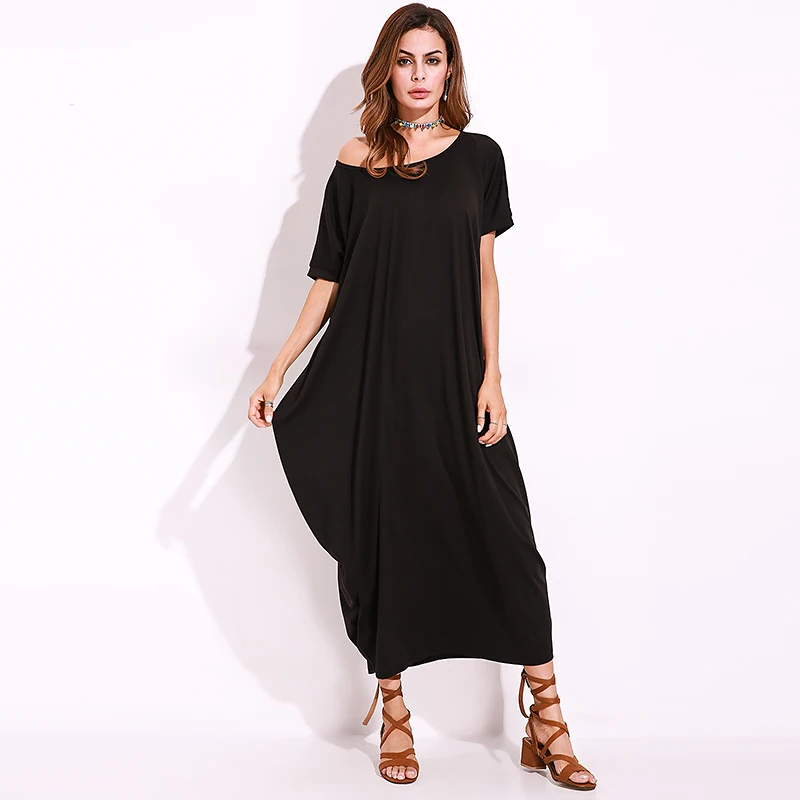 Женское платье большого размера с открытыми плечами с коротким рукавом, однотонное винтажное Vestidos 2019, повседневное длинное платье макси, св...
