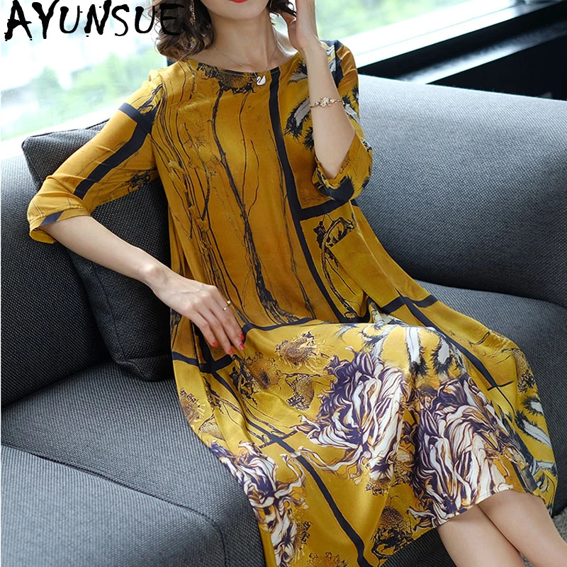 AYUNSUE 2019, весенне-летнее платье для женщин, Ретро стиль, с принтом, Пляжное, бохо, Цветочное платье, повседневное, миди, платья, Винтаж, Vestido Mujer ...