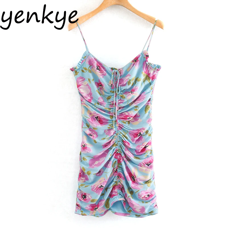 Женское облегающее мини-платье на завязках с цветочным принтом, без рукавов, с v-образным вырезом, сексуальное платье на бретельках, лето 2020, vestido XNGC9674