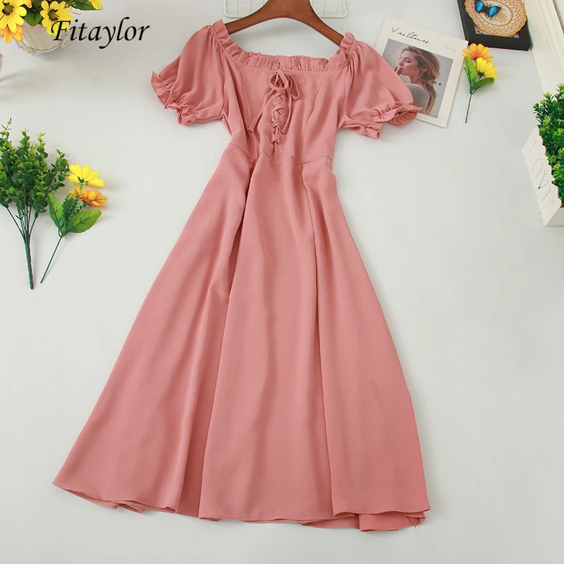 Fitaylor женское летнее винтажное платье с пышными рукавами и вырезом, высокая талия с бантом, завязывается оборками, миди платье, женское черно...