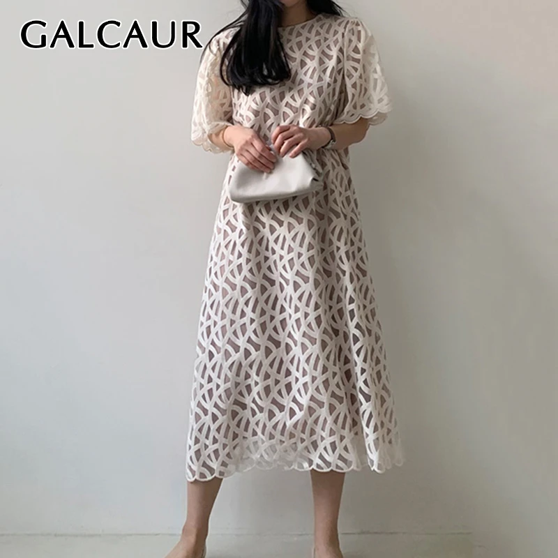 Женское платье с круглым вырезом GALCAUR, свободное платье средней длины с коротким рукавом, корейский стиль, лето 2020