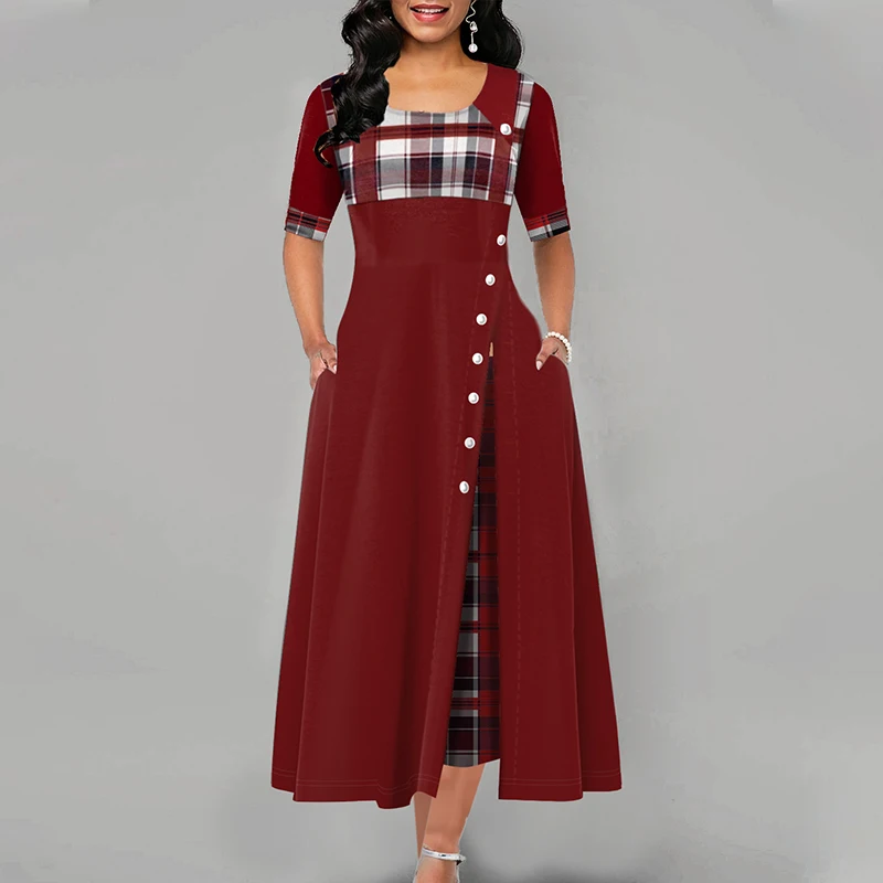 Большие размеры 5XL, женское клетчатое цветное платье в стиле пэчворк, асимметричное женское платье с рукавом до локтя, весна 2020, Повседневная винтажная женская одежда