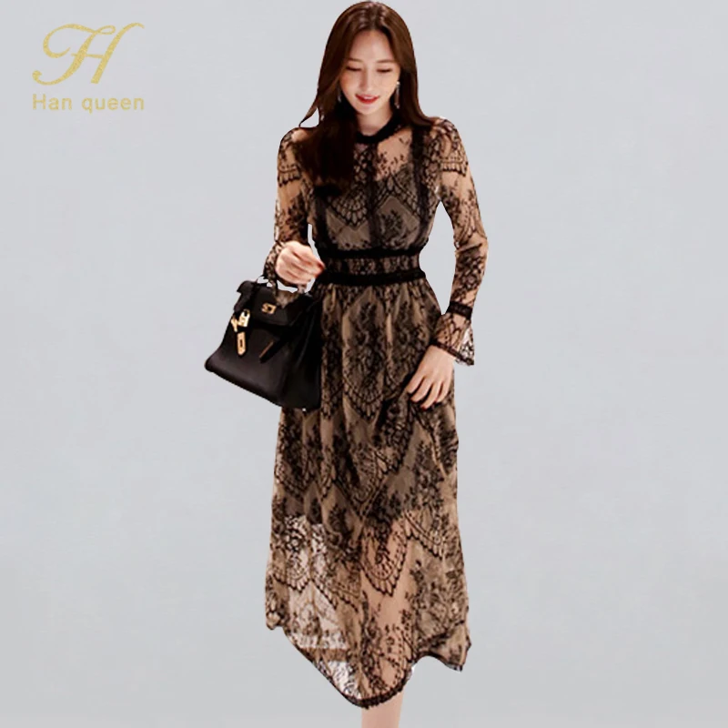 H Han queen/женское кружевное платье в стиле пэчворк, новинка 2019, элегантные винтажные платья, OL, сексуальные, просвечивающие, для работы, Vestidos