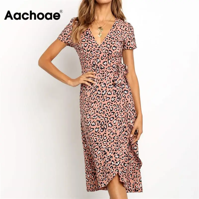 Летний спортивный костюм для игр с леопардовым узором платье 2019 Для женщин длинный широкий шарф пляжное платье сексуальное платье с v-образ...