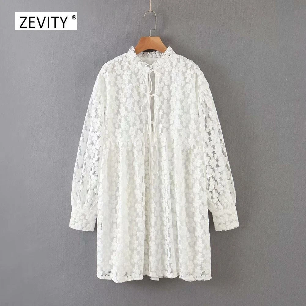 2020 женское элегантное белое Повседневное платье с вышивкой и воротником-стойкой, женское платье с рукавом три четверти и бантом, vestido, шикарные платья DS3920