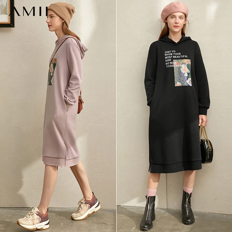 [Зимняя распродажа для фестиваля] Amii/французское маленькое Повседневное платье; Новинка 2019 года; зимнее прямое боди с капюшоном и вышивкой