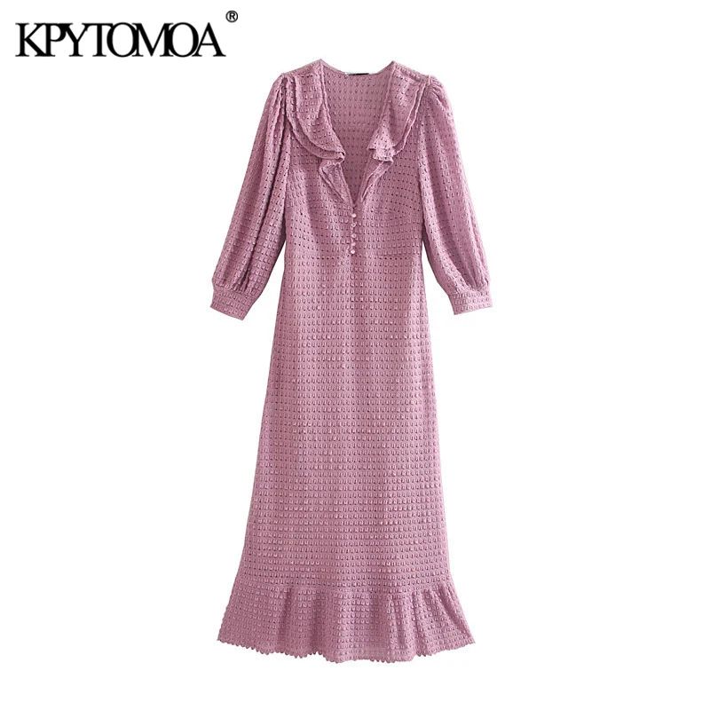 Винтажное элегантное текстурированное Трикотажное макси-платье с оборками, 2019 модное женское платье с v-образным вырезом и рукавом три четв...