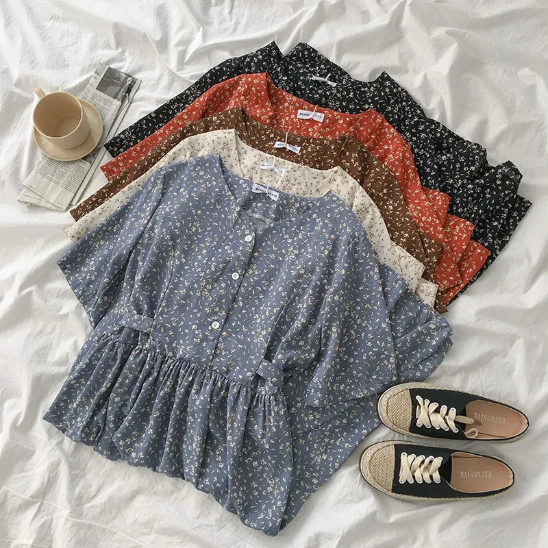 Женское винтажное платье с цветочным принтом Sumemr, корейское свободное элегантное платье с высокой талией и коротким рукавом, лето 2020