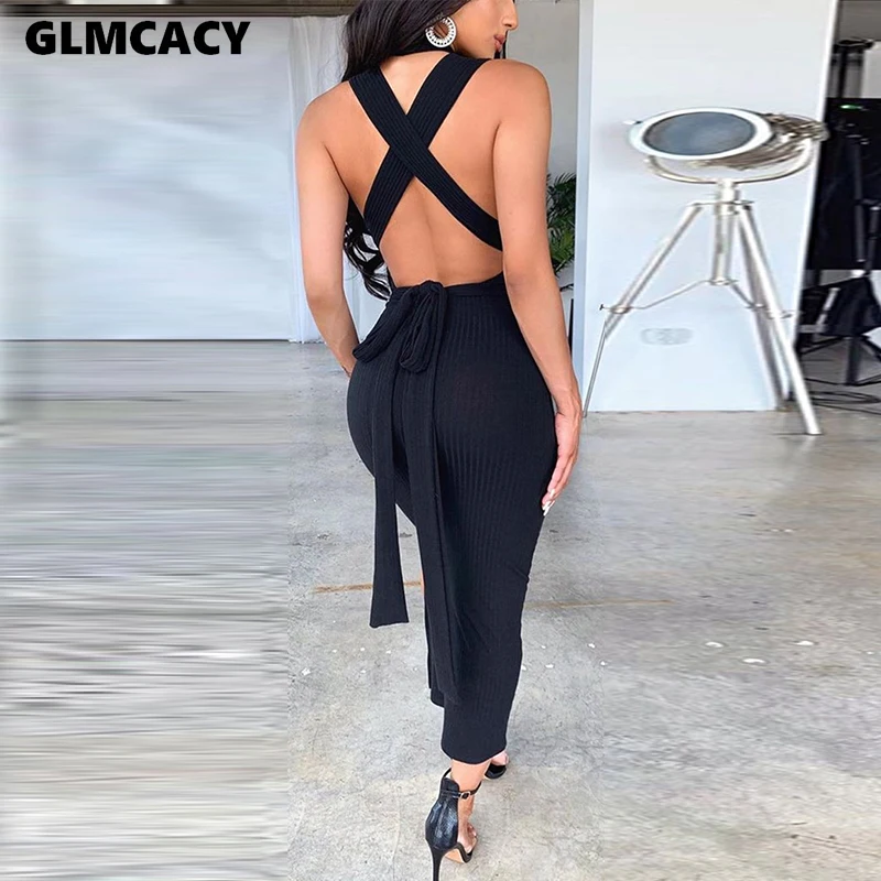 Sibybo Холтер Глубокий v-образный вырез летнее женское платье без рукавов, с открытой спиной, сексуальное облегающее платье Пляжная одежда Клу...