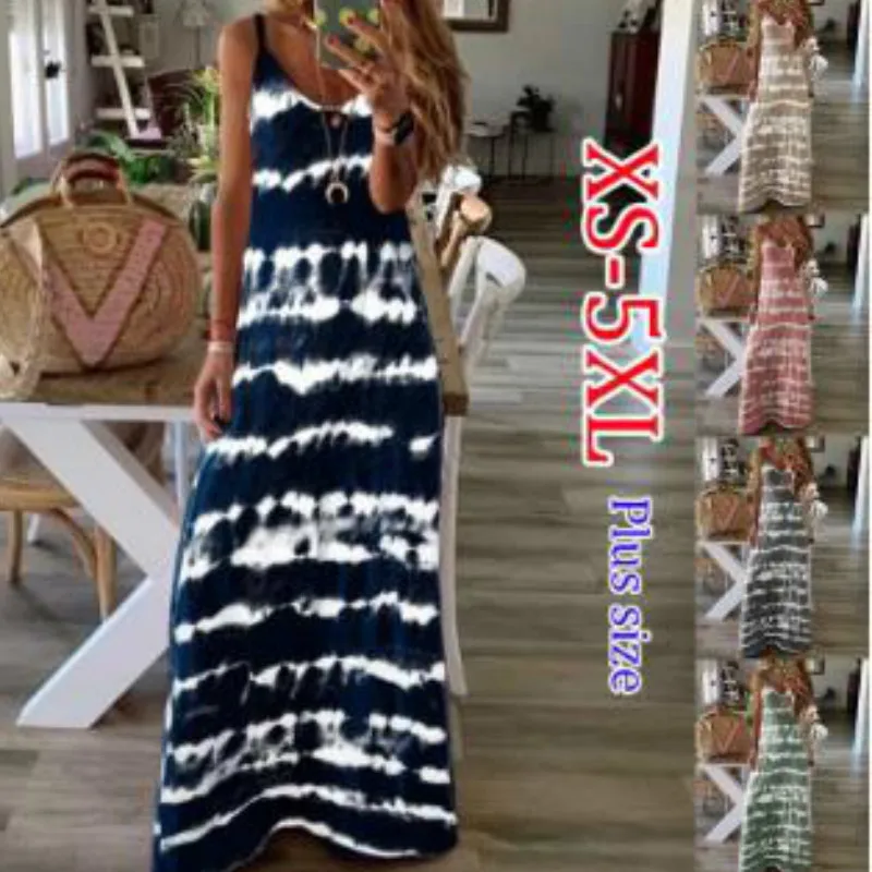 Новинка 2020, летнее женское длинное платье на тонких бретельках, сексуальное пляжное модное платье с принтом в полоску, синяя туника, большие размеры, S-5XL, женское элегантное платье