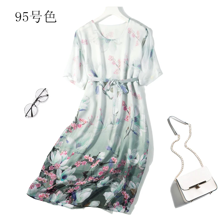 Женское Двухслойное длинное платье из 100% чистого шелка с полурукавами и принтом M L JN049-3, 2020
