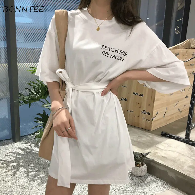 Женское платье с коротким рукавом и круглым вырезом, мини, с высокой талией, с буквенным принтом, повседневное, свободное, в Корейском стиле, шикарное, модное, Трендовое, для женщин, для летнего отдыха