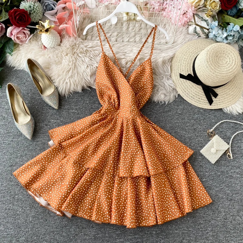 Ретро женское платье с воротником шифоновое сексуальное с открытой спиной пляжное женское платье без рукавов в горошек мини Vestidos K791