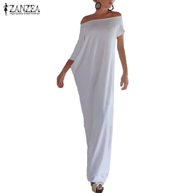 Zanzea модное женское летнее платье 2019 повседневное асимметричное Длинное Макси платье для вечеринки сексуальное одноцветное платье размера плюс S-5XL