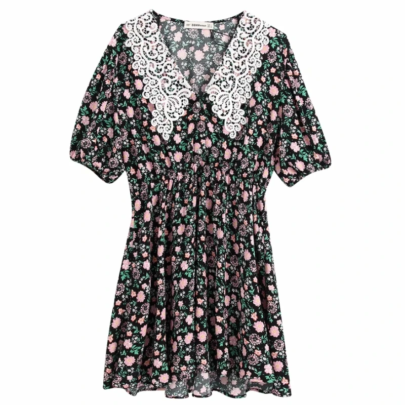 Новинка 2020, женское элегантное кружевное платье-кимоно с воротником «кроше» и цветочным принтом, женское элегантное платье-кимоно DS3441