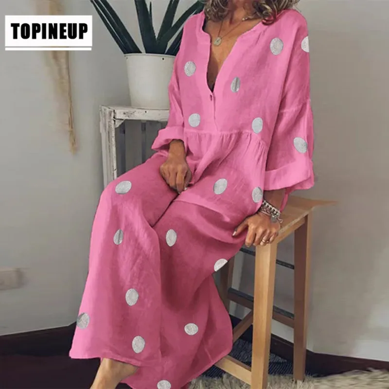 Большие размеры женское Хлопковое платье рубашка макси на пуговицах платья женские повседневные длинные платья в горошек Boho пляжное длинн...