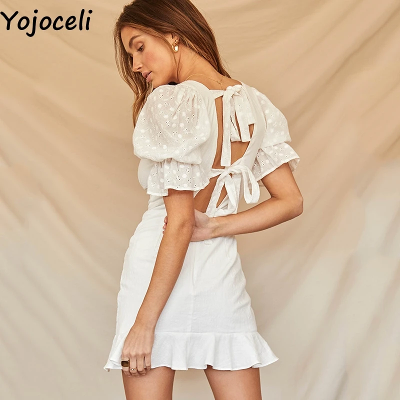 Yojoceli, сексуальное платье с бантом и оборками, белое кружевное платье с вышивкой, повседневное элегантное короткое пляжное платье, летние же...
