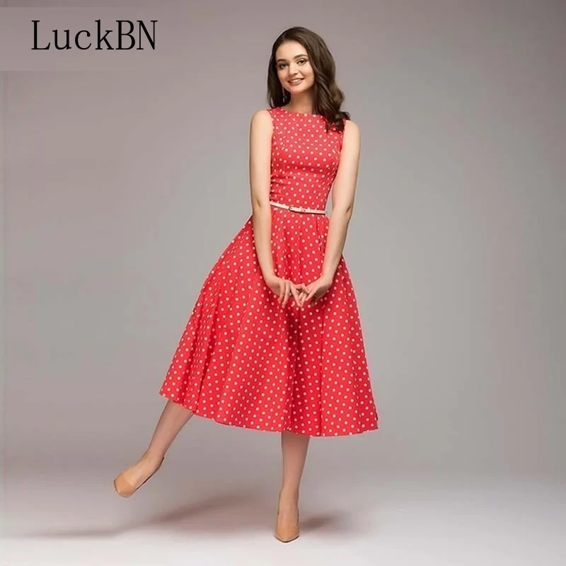 Платье в горошек с принтом летние женские элегантные вечерние платья с круглым вырезом, облегающее расклешенное узкое миди платье Модные В...