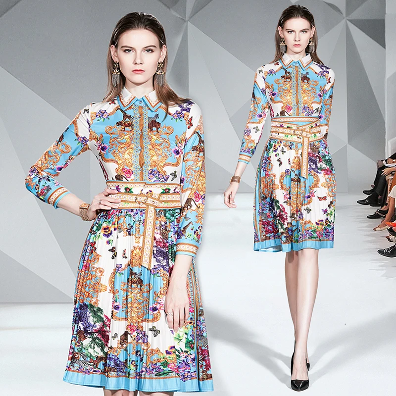 Женское роскошное плиссированное платье, женские осенние платья с принтом, офисные женские вечерние платья с длинным рукавом, дизайнерское...