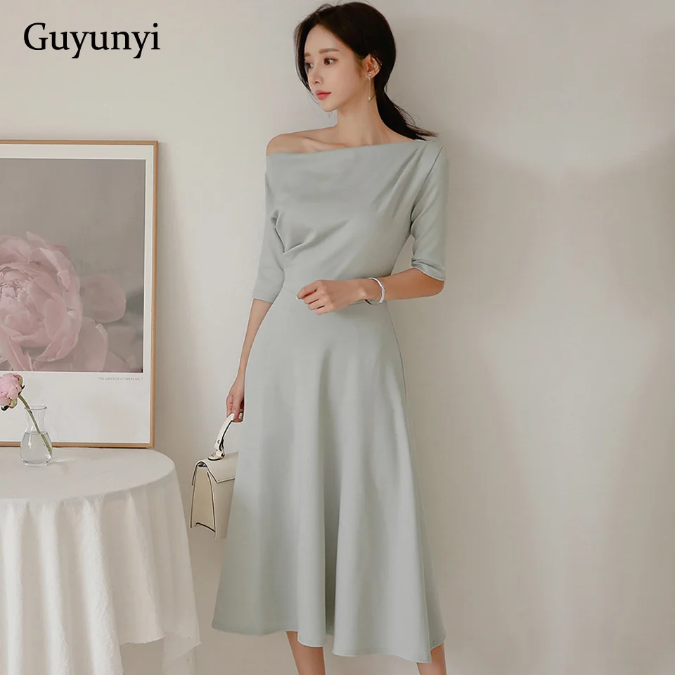 Однотонное элегантное вечернее платье 2019 осеннее сексуальное платье с вырезом лодочкой и рукавом «летучая мышь», простые свободные женски...