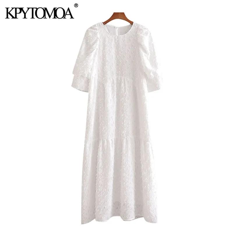 Женское винтажное платье-миди KPYTOMOA, винтажное платье с круглым вырезом и пышными рукавами, модель 2020