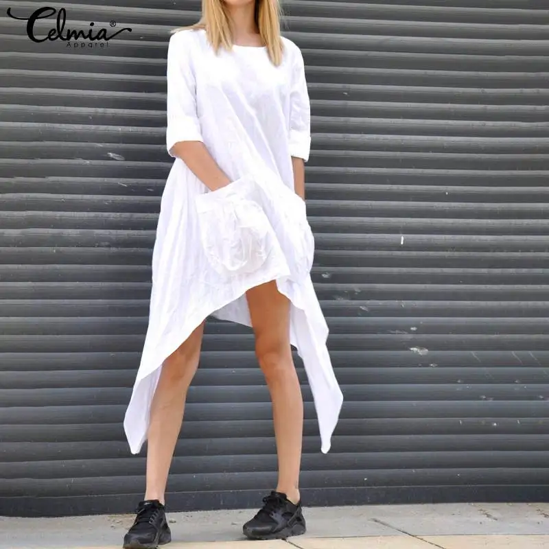 Модная женская Асимметричная блуза, платье для женщин, Ретро стиль, льняные топы, 2019, селмия, повседневные, свободные, вечерние, туника, Vestidos ...