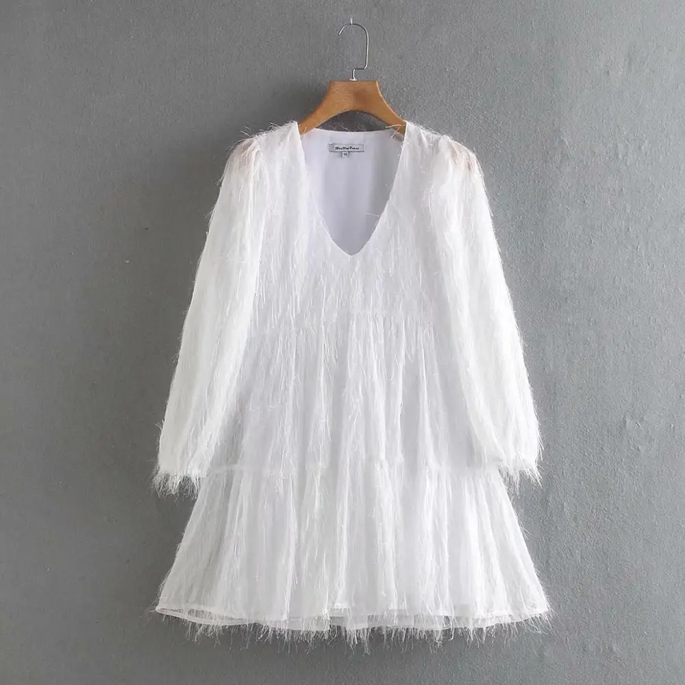 2020 женское Элегантное повседневное мини-платье с v-образным вырезом и кисточками цвета металлик, женские плиссированные платья, шикарные прямые платья DS3309