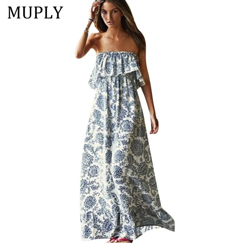 Цветочный принт Холтер длинное платье для женщин с открытыми плечами 2019 Новое поступление богемные платья пикантные разделение пляжное ле...