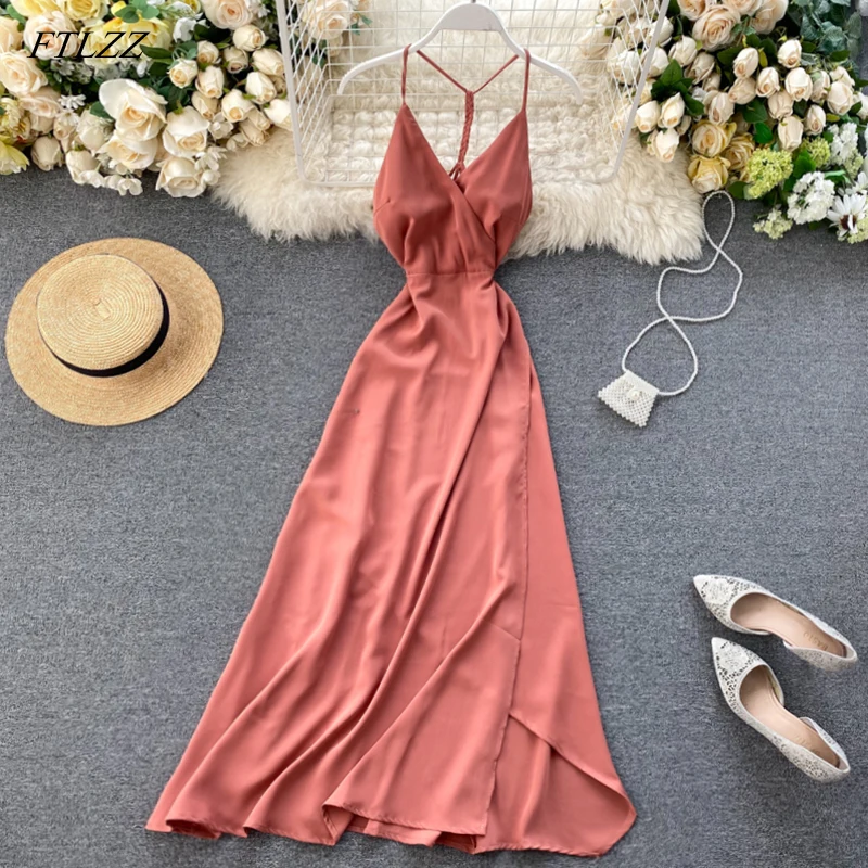 FTLZZ Новое Сексуальное Женское платье без рукавов, Летнее Длинное Платье на бретельках с открытой спиной, женское элегантное пляжное богемное платье для вечеринки