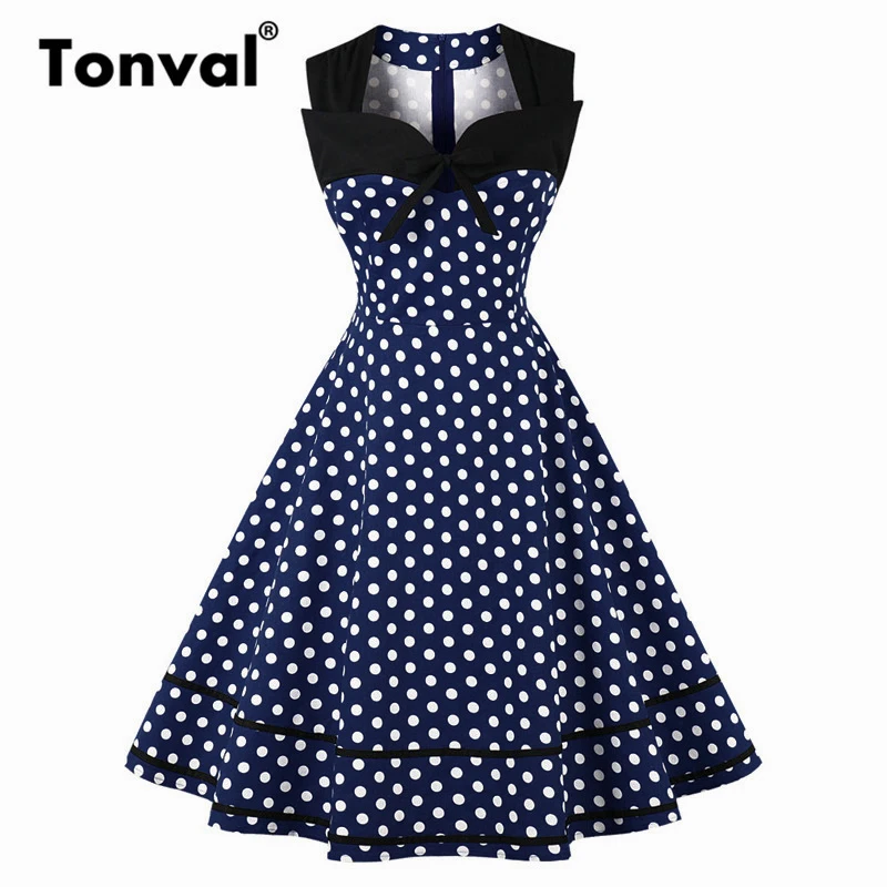 Tonval Винтаж горошек 1950 S летнее платье для женщин милая элегантный галстук V средства ухода за кожей шеи вечерние без рукавов рокабилли