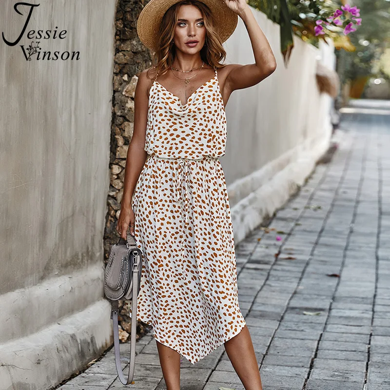 Женское платье на тонких бретелях Jessie Vinson, летнее асимметричное платье в горошек без рукавов в стиле бохо, пляжные длинные платья для отдыха