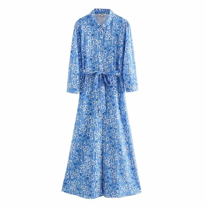 Женское Элегантное повседневное платье средней длины с рукавом три четверти и цветочным принтом, офисные женские платья с поясом, vestido, шикарные платья для отдыха DS3418