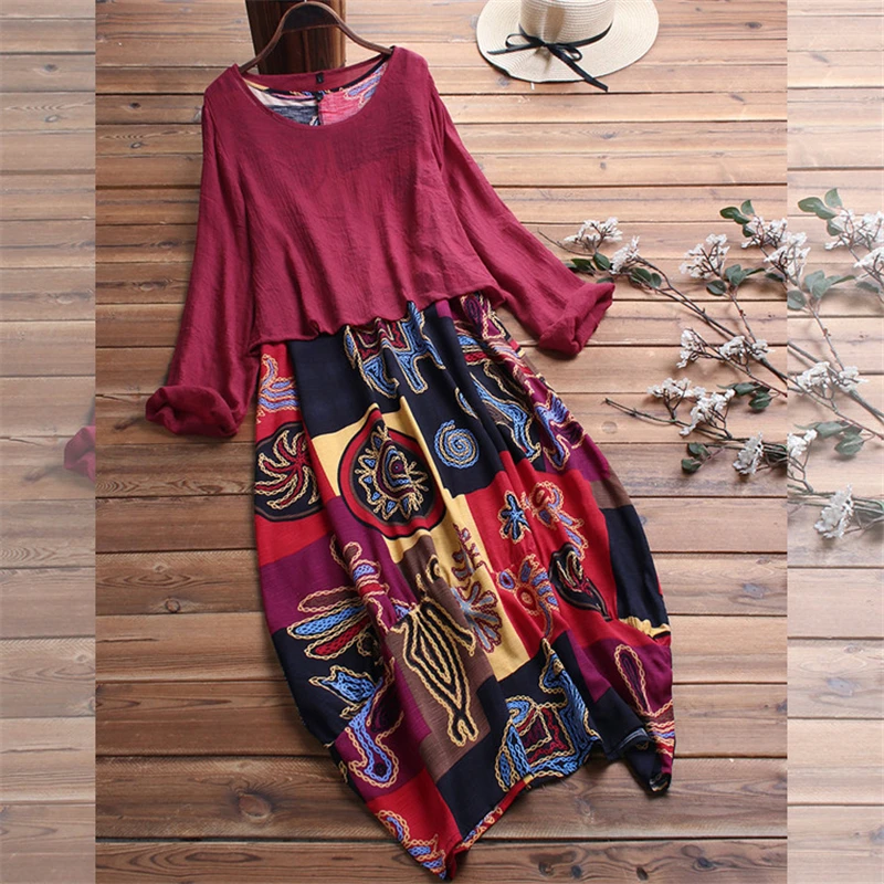 Хлопковое льняное винтажное Новое модное женское платье с принтом Элегантное Длинное Вечернее Платье Vestidos свободное Повседневное платье д...