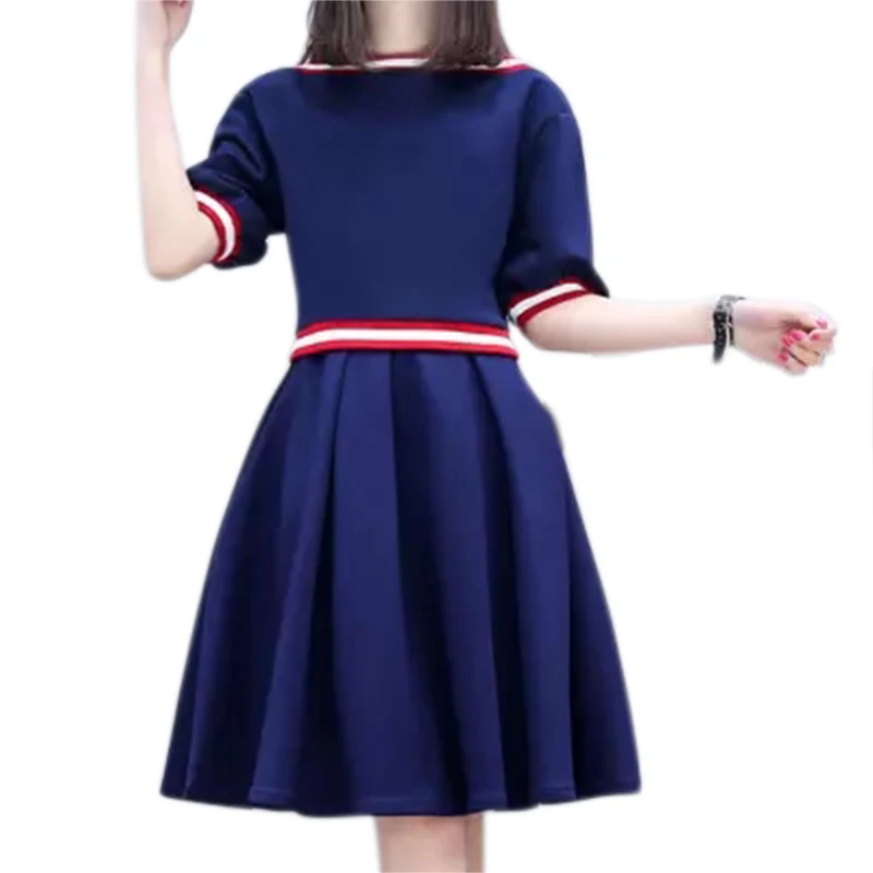 Новинка, летнее повседневное женское свободное Полосатое платье трапециевидной формы с круглым вырезом, Женский пуловер с коротким рукавом, офисное платье