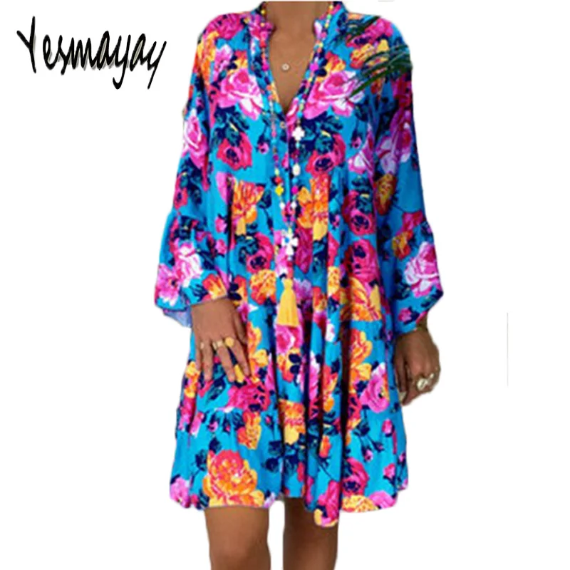 Летнее пляжное платье плюс размер 5XL женское платье es длиной до колена с цветочным принтом Сексуальное Женское Платье с v-образным вырезом в...