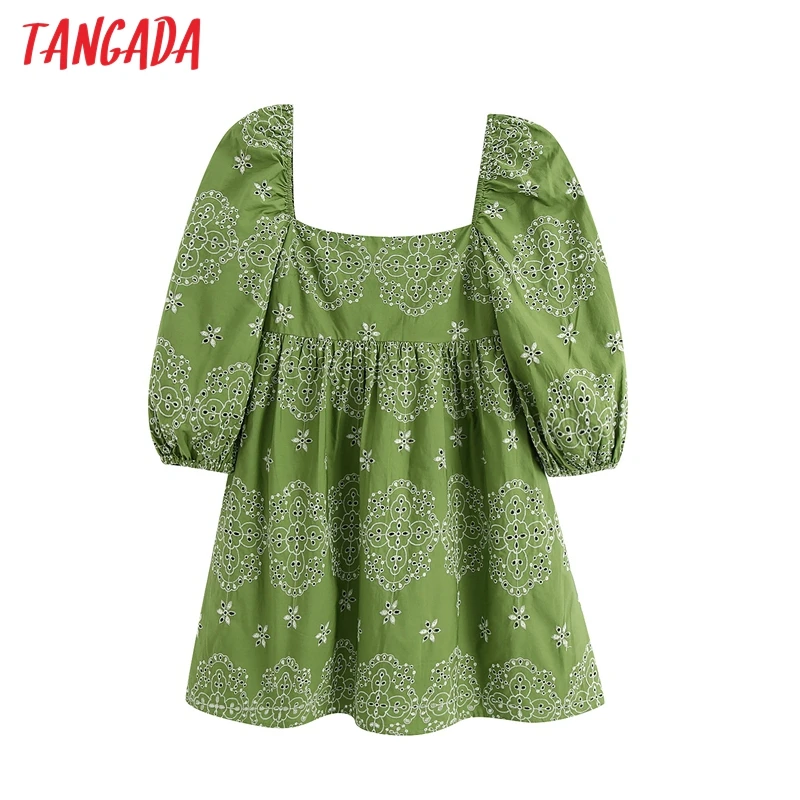 Tangada женское зеленое хлопковое платье с вышивкой и длинным рукавом 2020 новые женские мини платья vestidos BE736