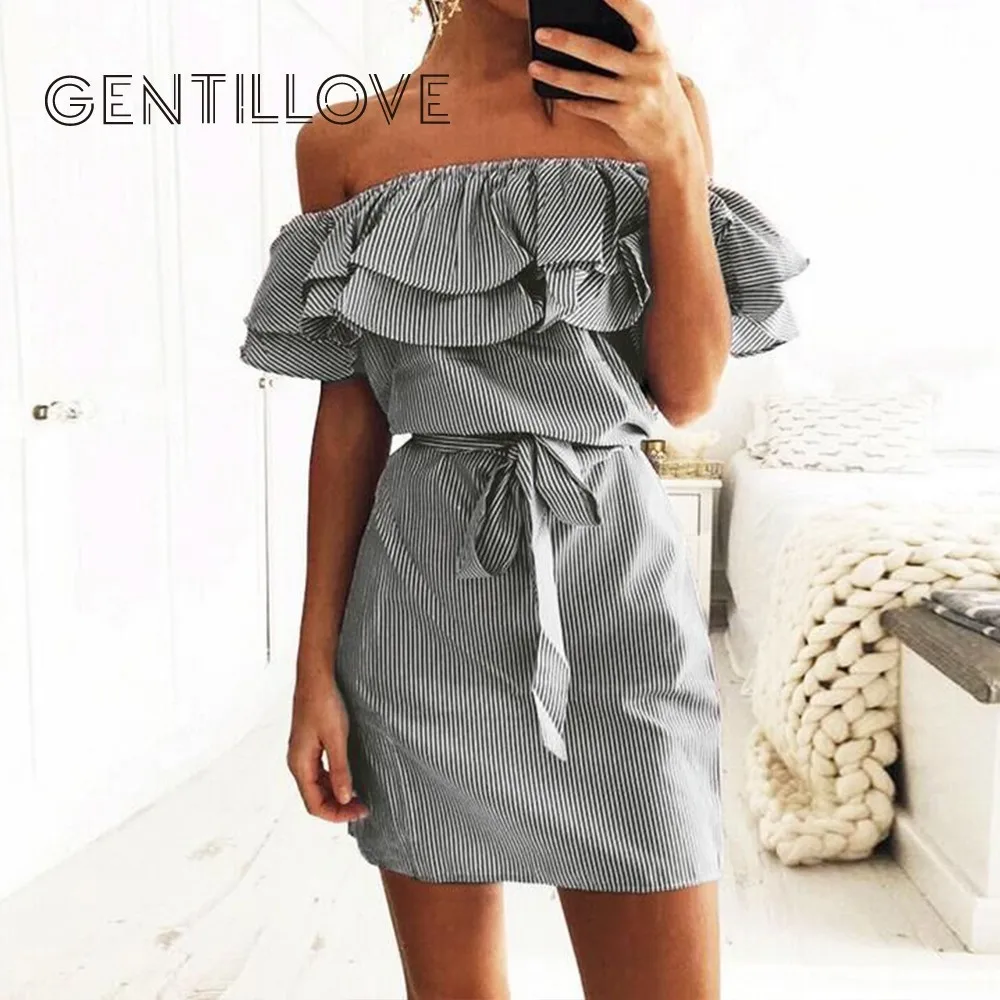 Gentillove женское повседневное Полосатое мини-платье с оборками 2019 сексуальное облегающее летнее платье с поясом vestido de festa