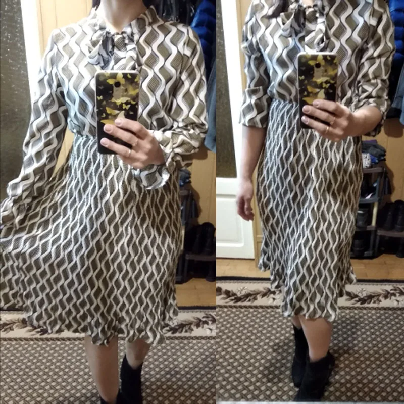 Милое женское элегантное шифоновое платье миди с бантом и воротником, Повседневное платье трапециевидной формы в полоску с длинными рукавами, весеннее новое летнее платье