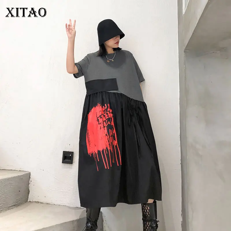 Женское платье XITAO, Повседневное платье большого размера с бантом в стиле пэчворк, с нишевым дизайном, весна-лето 2020, GCC3514