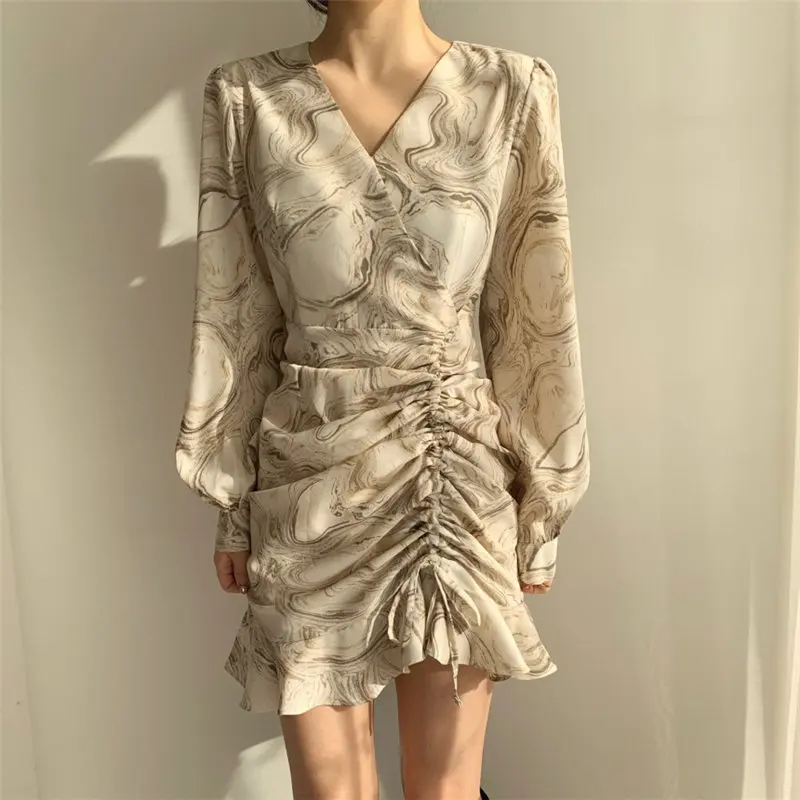 Новинка 2020 года. Свободные повседневные женские Мини-Платья с цветочным принтом и v-образным вырезом, с высокой талией, в стиле ретро, на завязках.