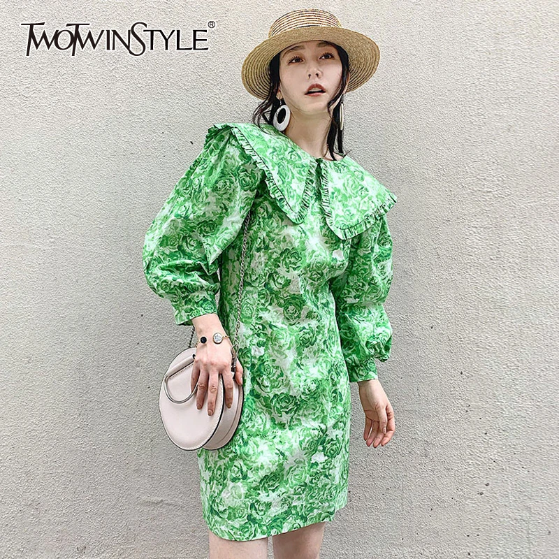 Платье-мини TWOTWINSTYLE, с длинным рукавом и принтом фонарика, с высокой талией, 2020