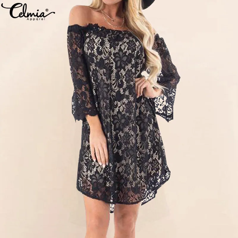 Летнее сексуальное кружевное платье 2019 женское платье с открытыми плечами миди Повседневное платье факельная втулка нерегулярная подол эл...