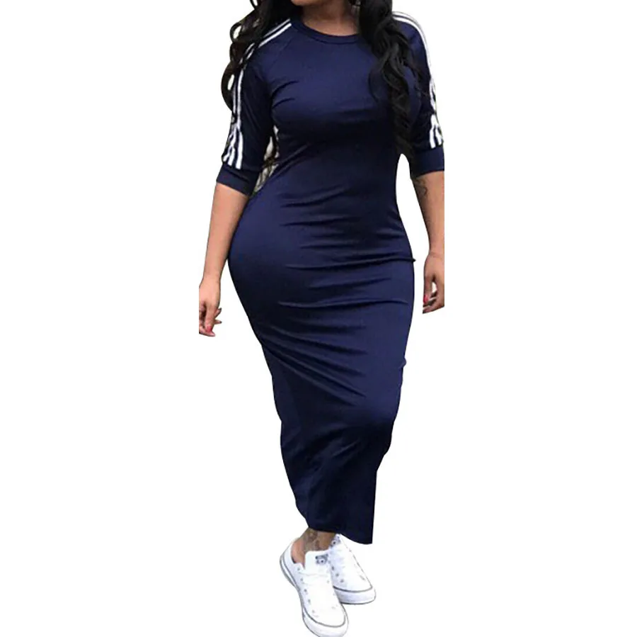 HAOOHU работы Летний стиль Для женщин Bodycon платья 2018 Новое поступление Повседневное шеи экипажа половина платье миди с рукавами